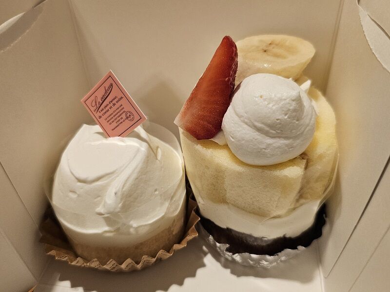 右は、いちごものってるけどバナナのケーキ。左はなんと、じゃがいものケーキ!