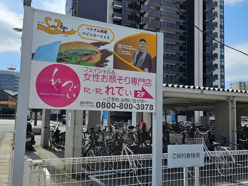 市役所の西側で、この駐輪場と品川家さんの間にあるビルの1階です。