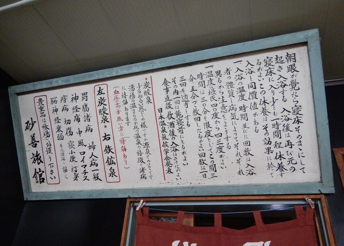 玄関には味のある泉質案内の看板。
