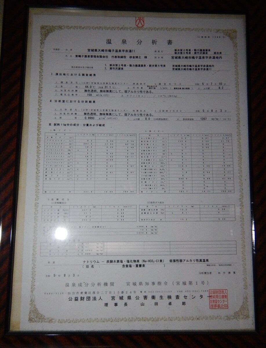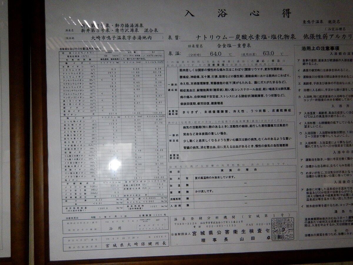 東鳴子の共同源泉の成分表と、宿の独自源泉の計3種類分のようです。