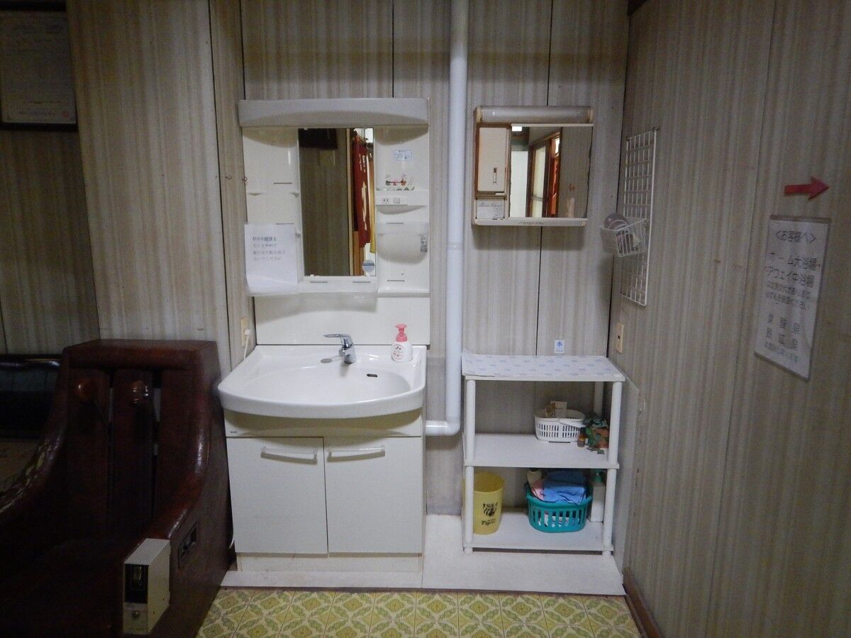 休憩用のソファーや洗面台は各浴場の外に共有で置かれています。