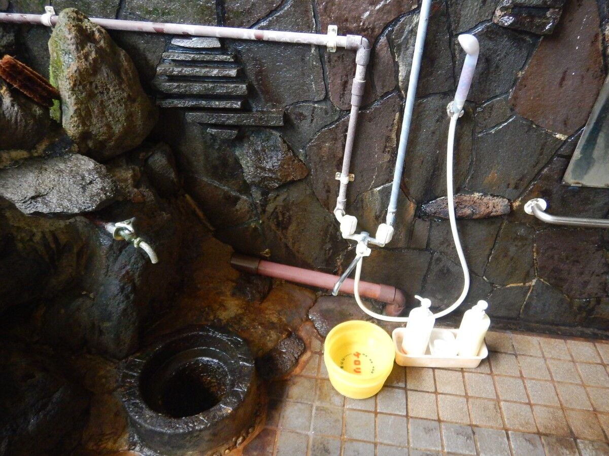 続いて隣にある鉄鉱泉のひょうたん型の湯舟へ。