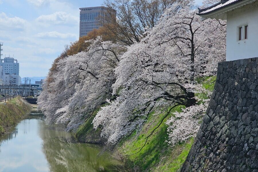 さて。今日のお昼は、天気もいいので霞城公園の桜を下見に行ってきました♪