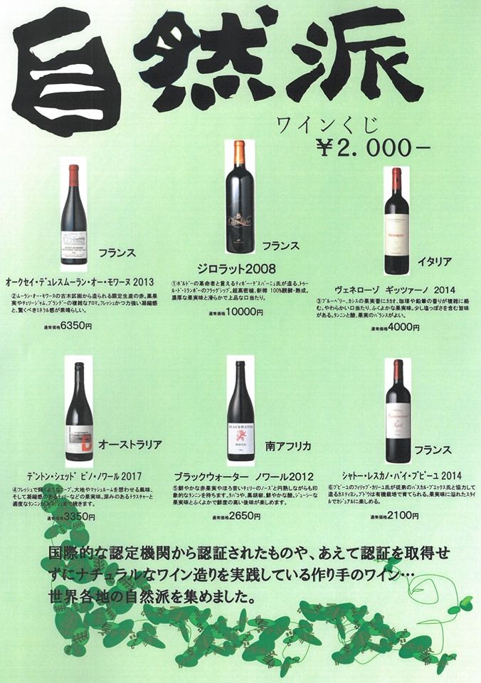 食品館256さんのワイン売り場で、2000円で「ワインくじ」っていうのをやっていると。