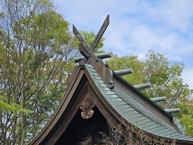 境内をひと通り歩きながら、各所に配置されたお社を巡ってお参りをして、あわせて気になるところを観察してたんですが、こちらは本殿の屋根。