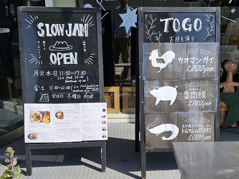 散歩しててたまたま見かけた、SLOW JAM さんのランチメニュー。