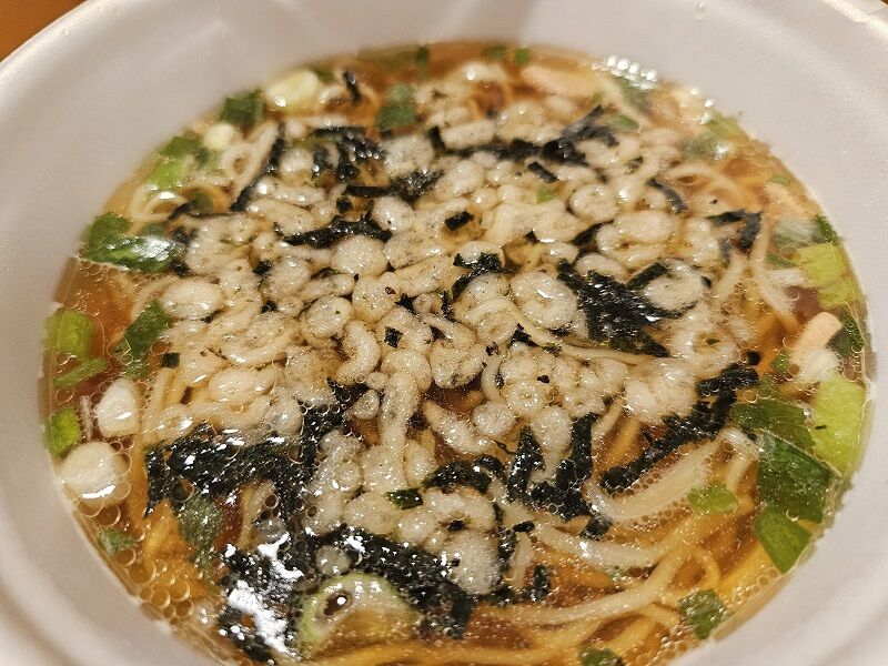 スープの上にはこんな感じで天かすものって、ちょっと和風出汁の山形 鳥中華が出来上がりました!