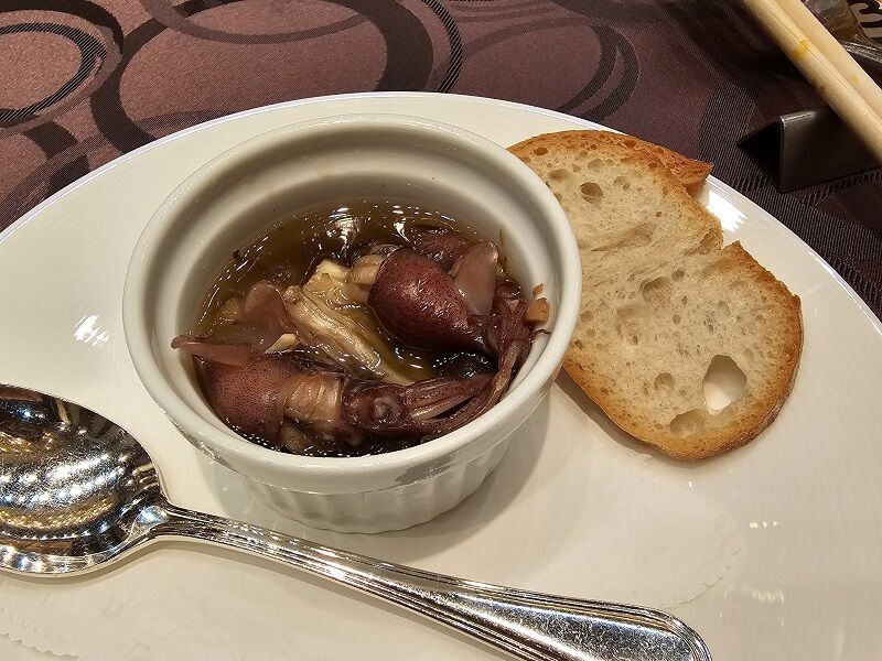 ホタルイカのアヒージョ、的なものだったと思いますけど、1月も経つと忘れちゃいますね~。
