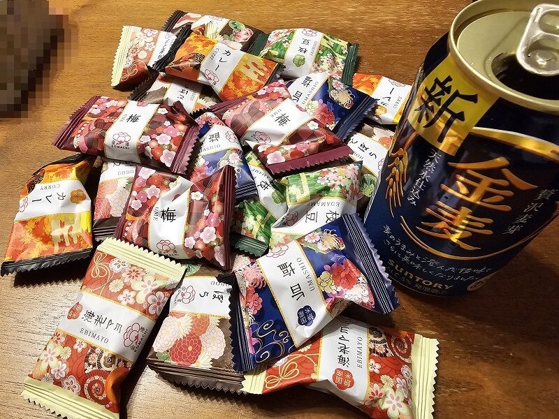 いただき物のおかき。たくさんの種類があったけど、おかきって意外にお酒のつまみに合いますね♪