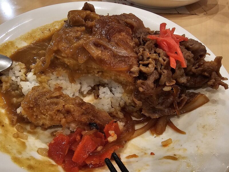 これが僕の選んだ料理。牛丼チキンカツカレー。