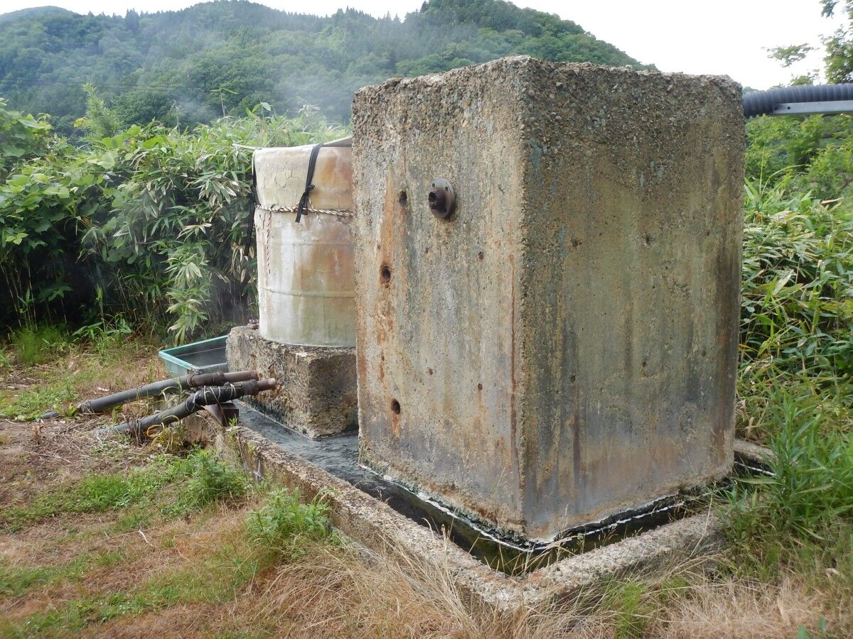 奥の駐車場には源泉槽らしきものがあり、湯舟から近くお湯が新鮮なことが伺えます。