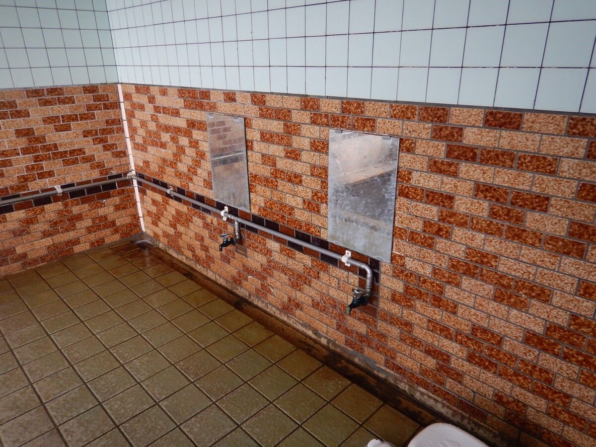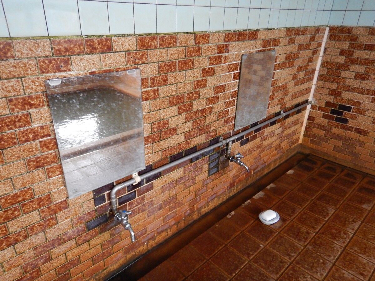 大きな窓が開放的で、洗い場は水の蛇口のみ。