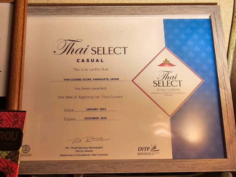 あっ! ありました! 入り口近くにあったコレ。タイ・セレクトの認定証です。