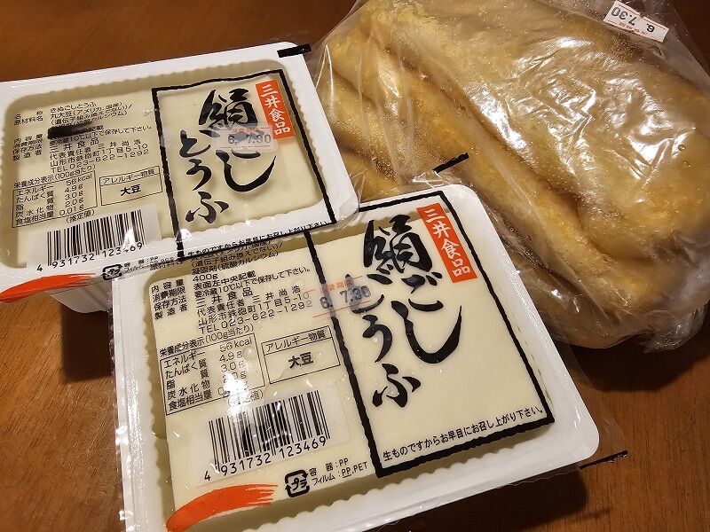 で、せっかくなので絹ごしと油揚げをいただいてきたんですが、絹ごしの方は、ひとつ買ったら「これ、ちょっと厚みが足りなくなっちゃったんだけど、よかったら食べてください」っていただいたんですよね♪