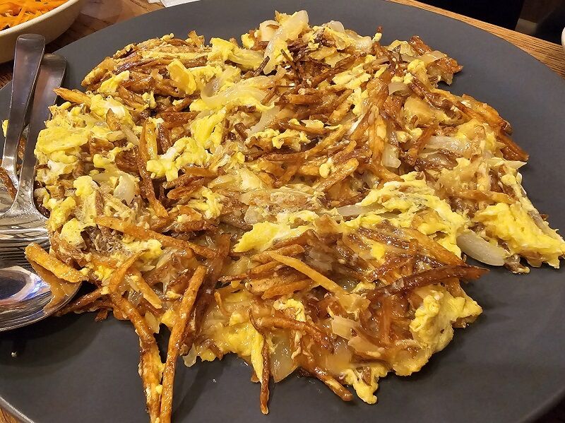 バカリャウは、鱈の身を干したもの。それとポテトフライを卵とじにした料理です。