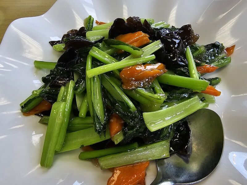 野菜類が足りないじゃない、という奥さんが頼んだ小松菜の塩味炒め。