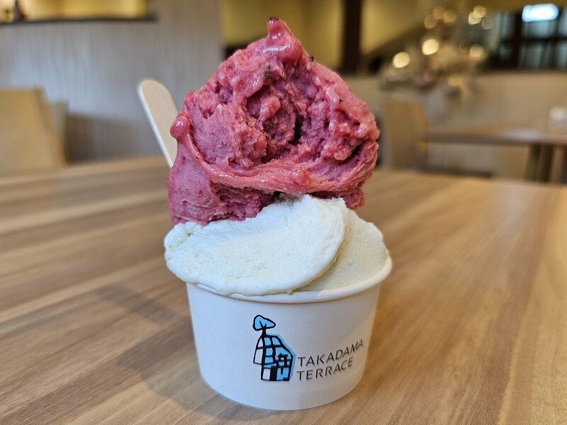 「⾼擶城本丸(主郭)の地名を冠したジェラート」ということだそうですが、この高擶テラスさんが建っている場所って、もしかしたらもともとお城があったところなんですか!?