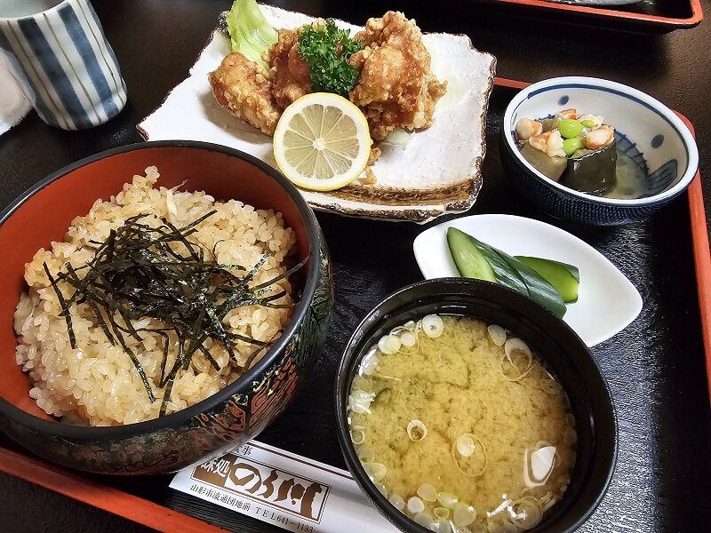 それぞれメニューから食べたいものを選んで注文したんですが、僕はこちらの「唐揚げおこわ定食」。