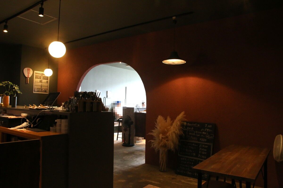 薄暗いフロアにはカウンター席とテーブル席が並んでしました。