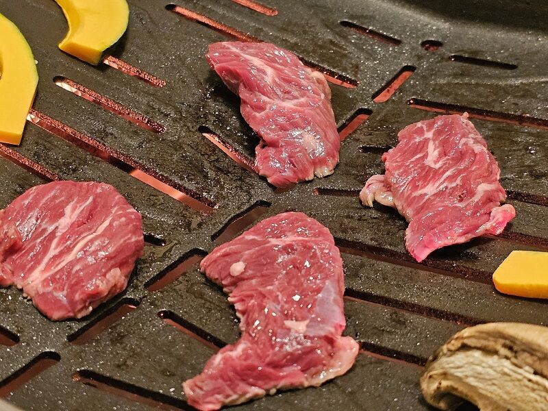 お肉を焼いてる写真がないなーと思って撮ってみたんですけど、これじゃお皿にあるのと変わりなかったな。