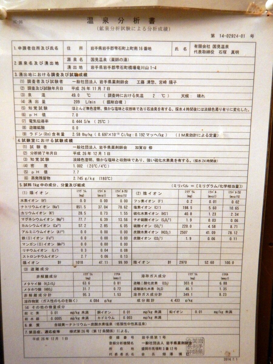 こちらにも温泉成分表は掲示されていましたがちょっと古いですね。