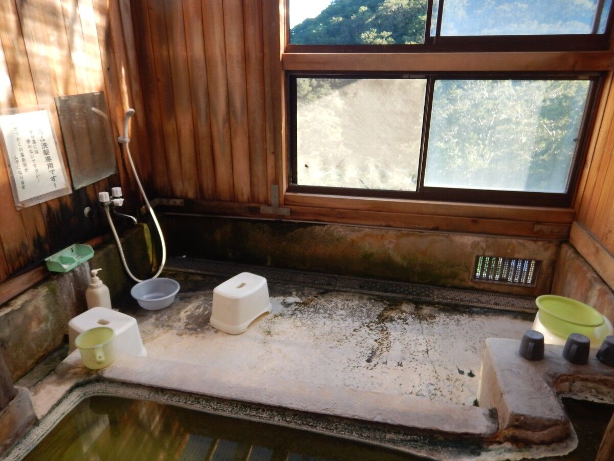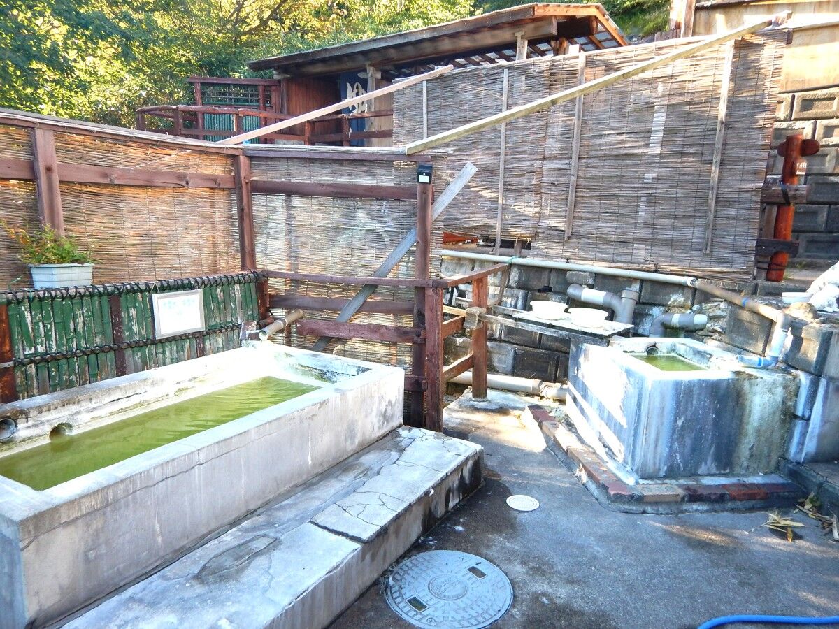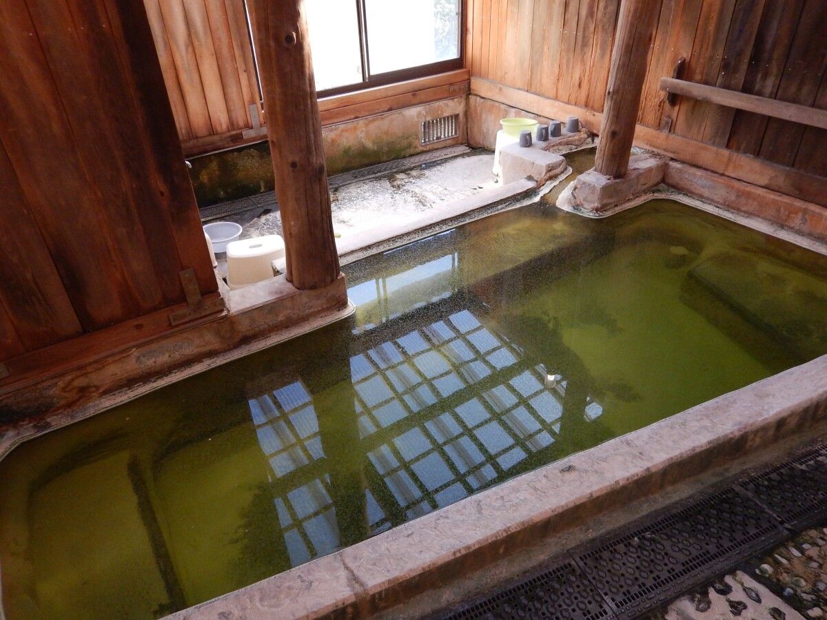 すぐ目の前に緑色のお湯を湛えた湯舟があらわれました。