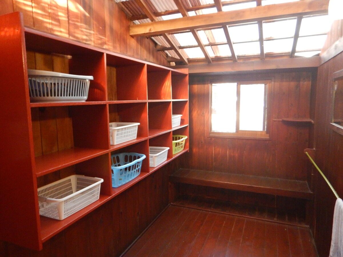 脱衣所は棚だけのシンプルな造り。