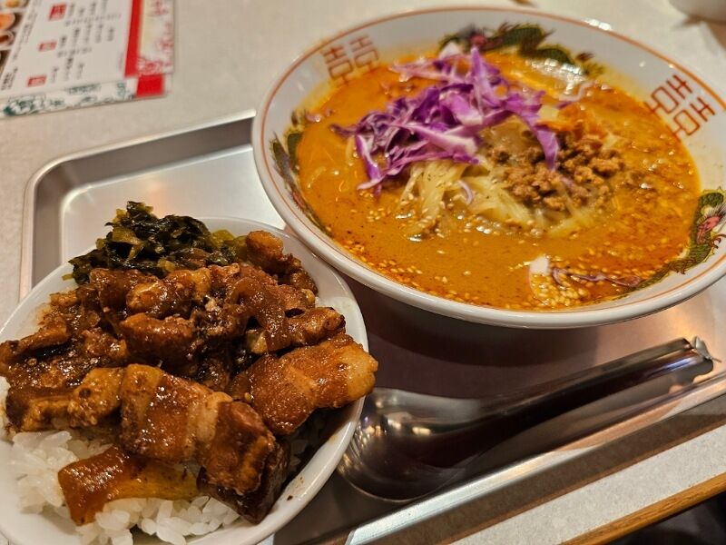 そんな台中香さんで僕が選んだランチのメニューは、小ルーロー(魯肉)担々麺。