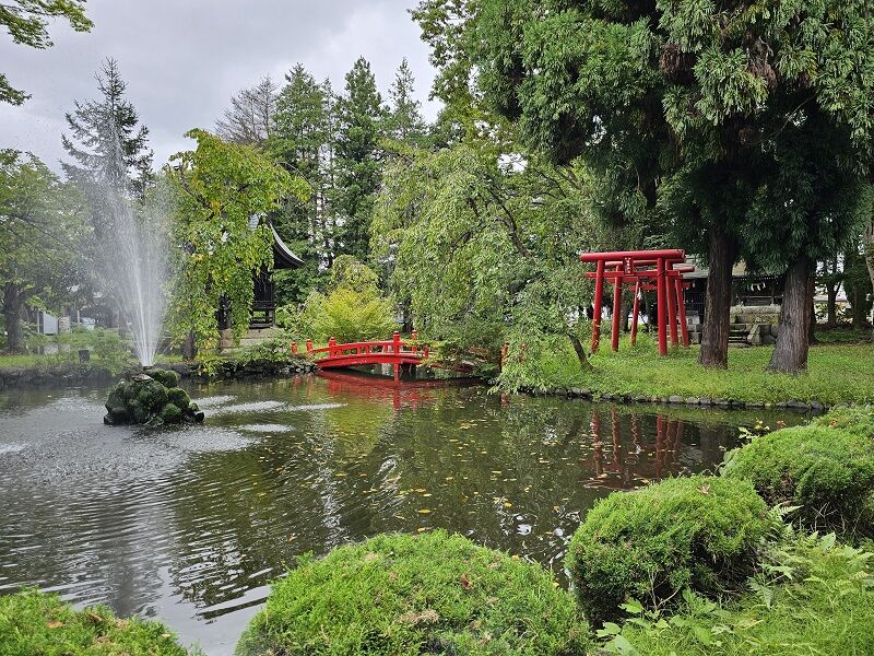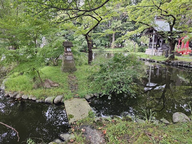 厳島神社から、さらに池の右手へと抜けていくとまたしてもお社が2つ並んでいます。