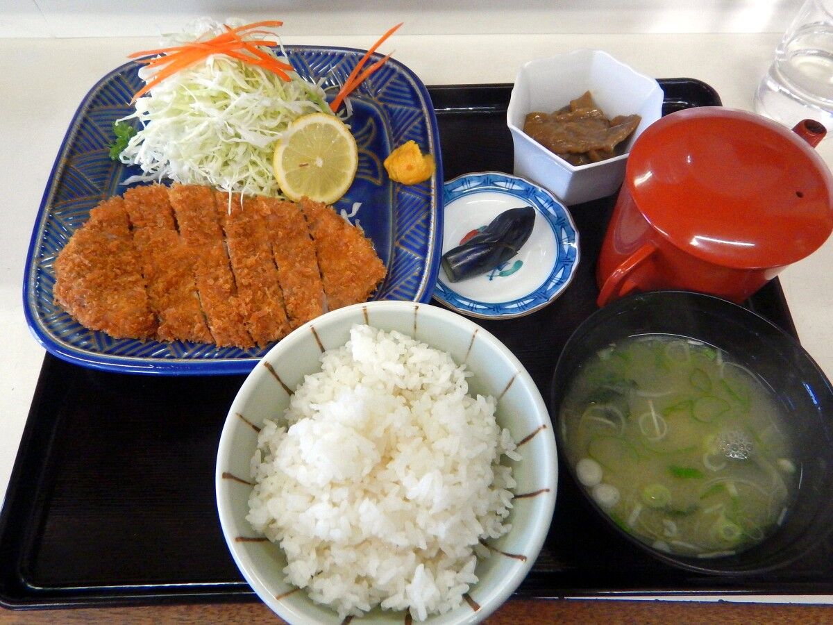 メインのトンカツ以外に、小鉢と漬物、お味噌汁と色々ついています。