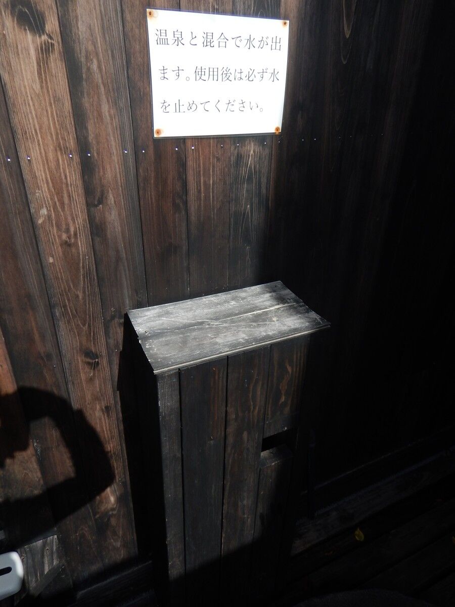 スタッフから説明があったボックスのバルブを開けると湯口のお湯に水が加わるとのこと。