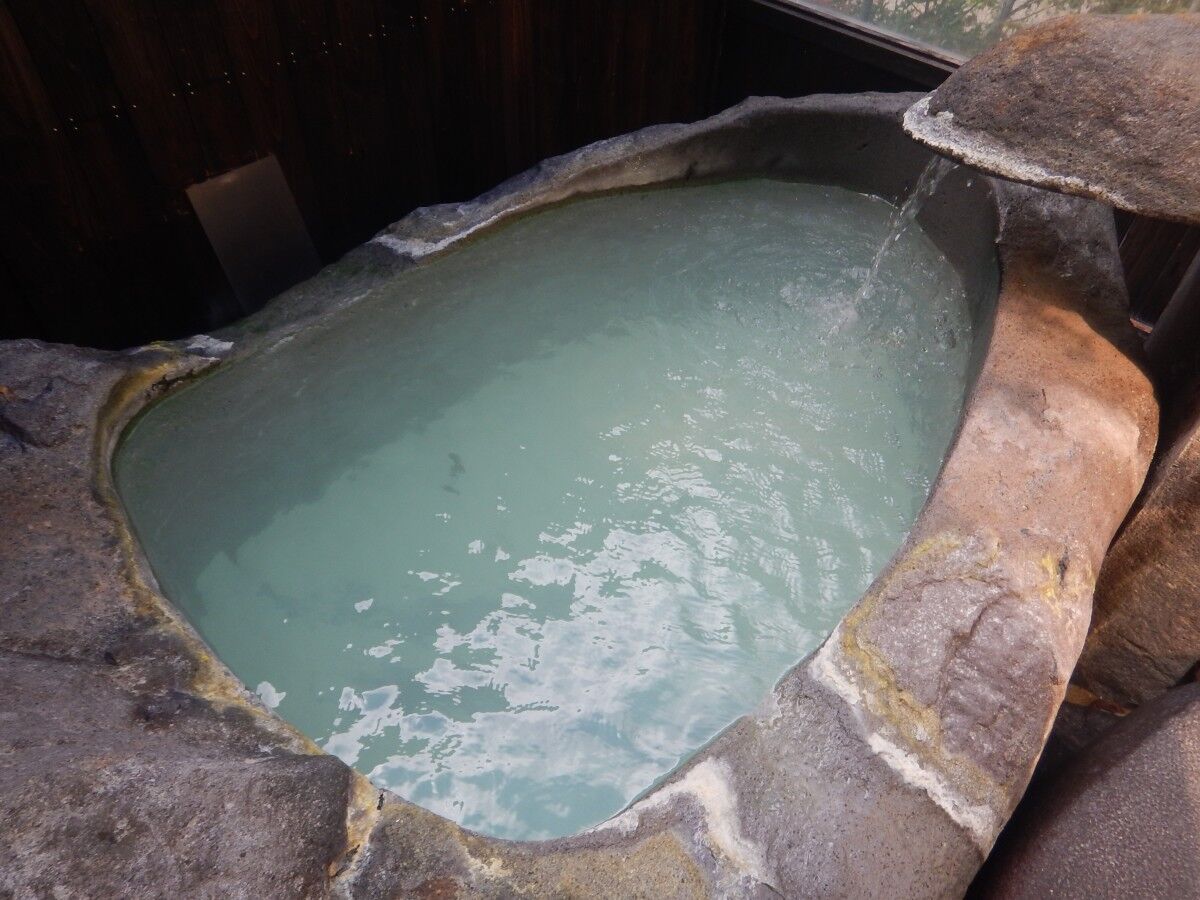 また沈殿した湯の華も舞い上がりミルクのように真っ白な濁り湯に。
