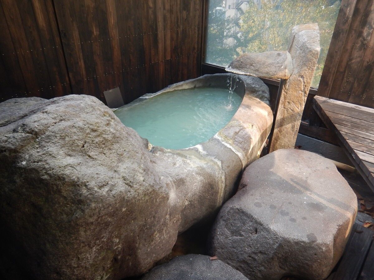 一番風呂でしたのでお湯は透き通っており、底にたっぷりと湯の華が沈んでいるのが見えました。