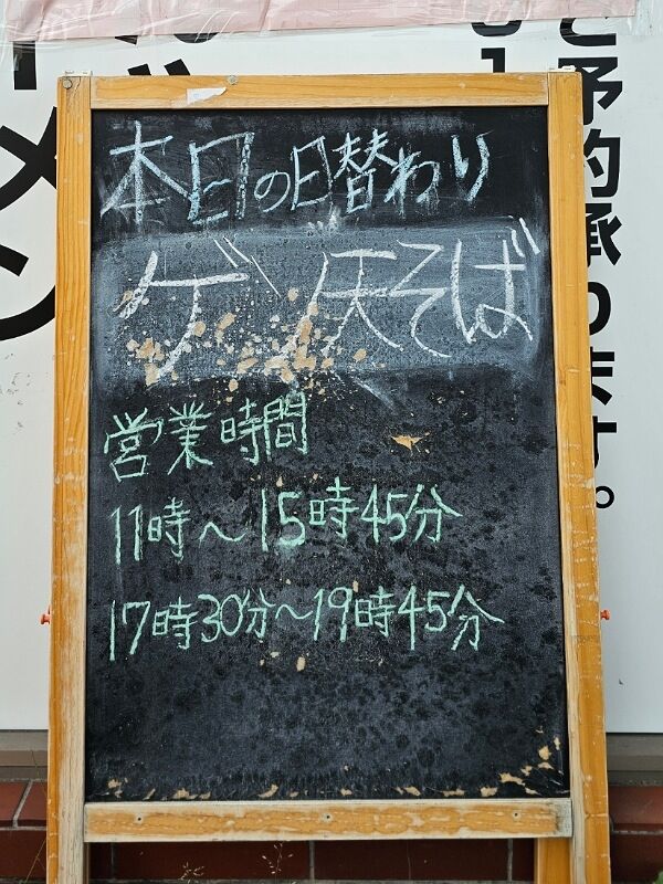 お店の前には、本日の日替わりは「ゲソ天そば」の文字。