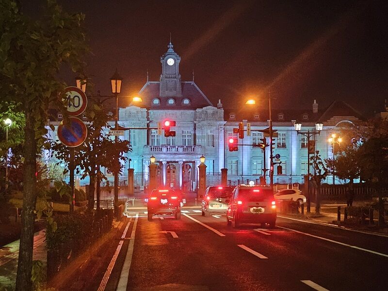 今日の帰りみち。文翔館が淡いブルーに染まってました。