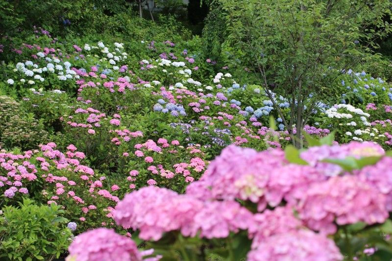 赤青白と揃っており、様々な種類のアジサイを楽しむことが出来ました。