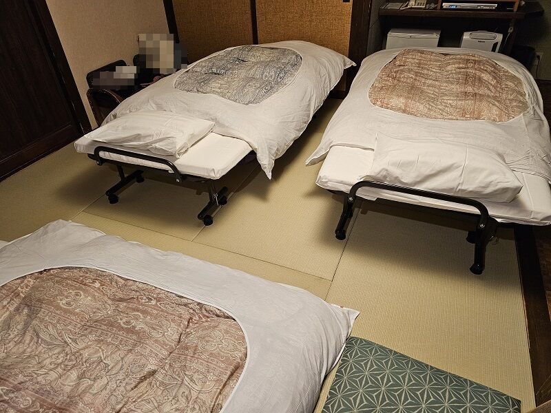 食事が終わって部屋に戻ってみると、ちゃんとベッドが2つ用意されてました。