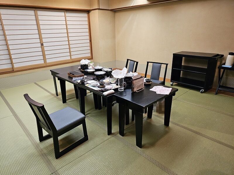 実は、今回予約したお部屋は、夕食を部屋でゆっくりとれるということが大きな魅力のひとつだったんですが、残念ながら部屋食だと座卓になってしまうので、事前に相談してテーブル席の部屋でいいので変更してほしいとお願いしてたんですよ。