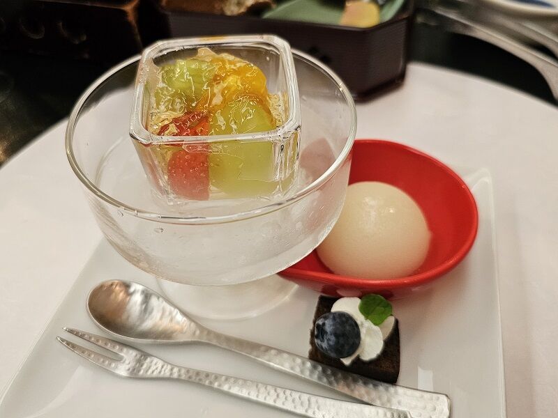 本日のシャーベット(梅)、季節の果物、ブラウニーショコラ