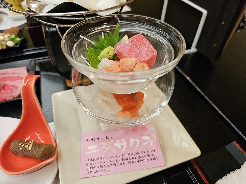 瀬見温泉のゆめみの宿 観松館さんで感動のおもてなしを体験してきたのですが、その感動は夜の食事においても降り注ぎました。