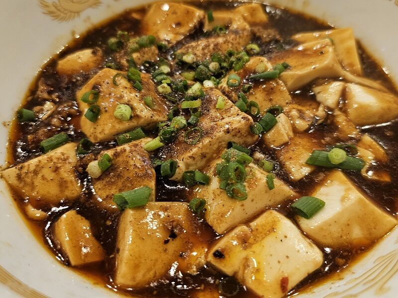 陳記さんの麻婆豆腐は、上に花椒が振りかけてあってシビ辛系ではあるんですが、そんなにヒリヒリするほどの辛さではなかったですね。心地よい辛さです。
