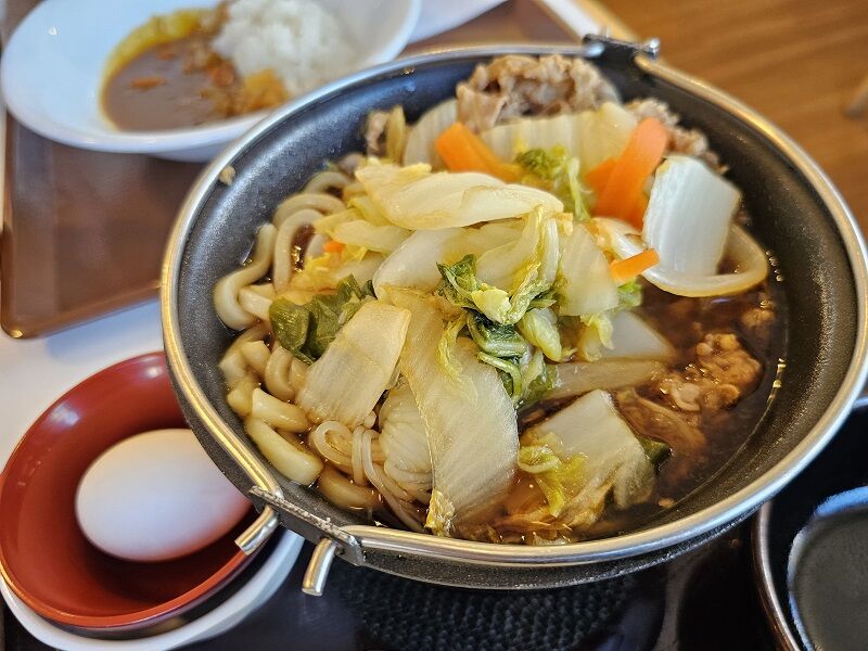 さすがにおなかが減っていたので、頼んだのも牛すき鍋の定食。ガッツリ行きましたねー 笑