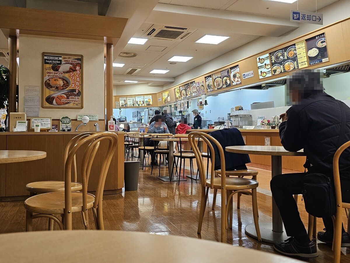 ドムドムハンバーガーさんのほかにもラーメン、うどん・そばにカレーなど幅広い料理を提供してらして、老若男女たくさんの方でにぎわってました。