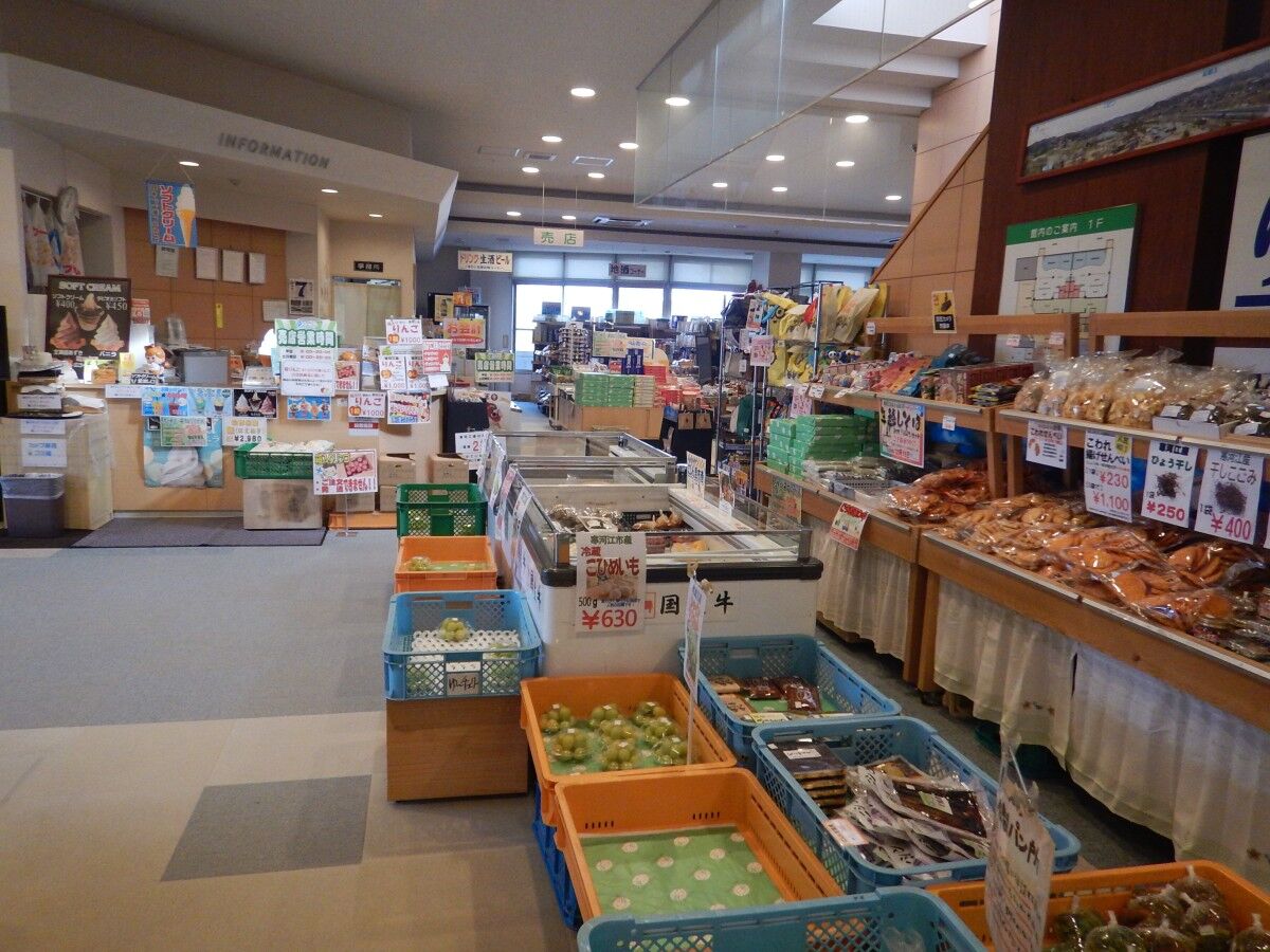 温泉だけでなく、広い売店コーナーが直売所的な品ぞろえなのも人気の理由かも。