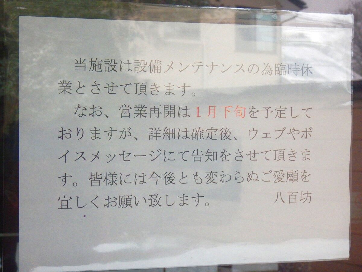 八百坊 臨時休業中