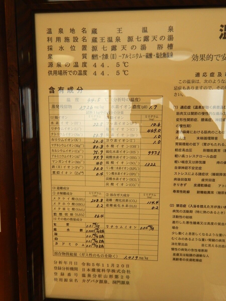 壁には温泉成分表。