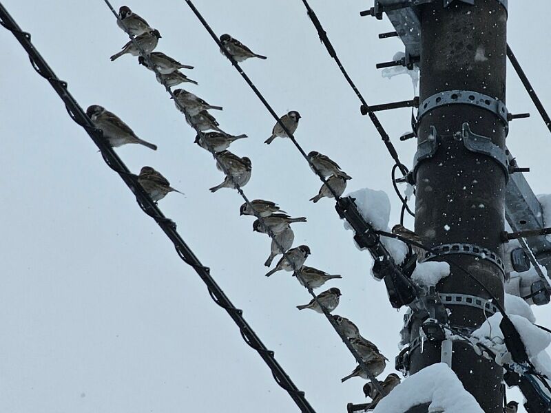 写真は、今日の通勤時に見つけた仲のいいスズメたち。