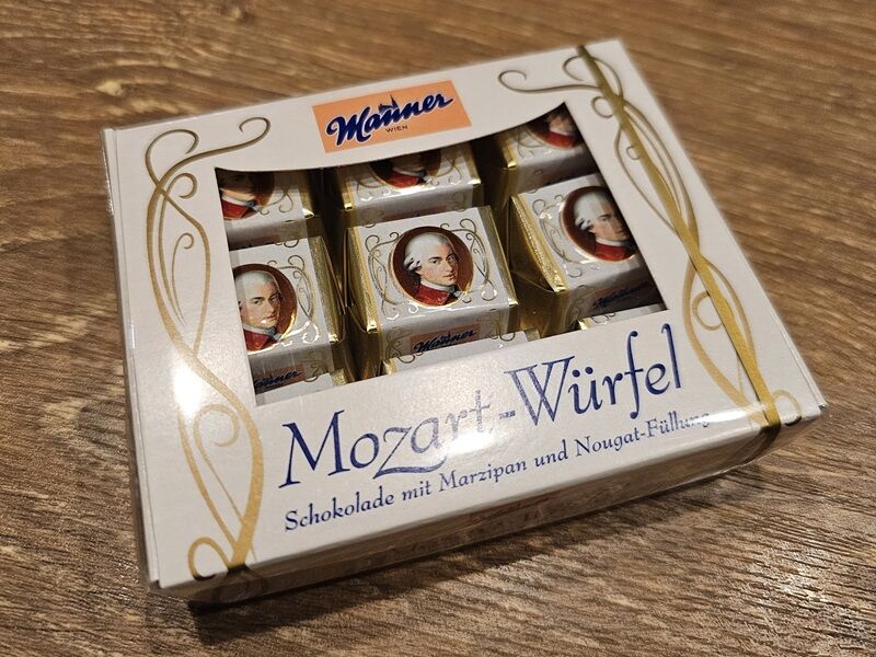 チロルチョコよりもうちょっと大きめかな。ウィーンからのお土産、モーツァルトのチョコ。