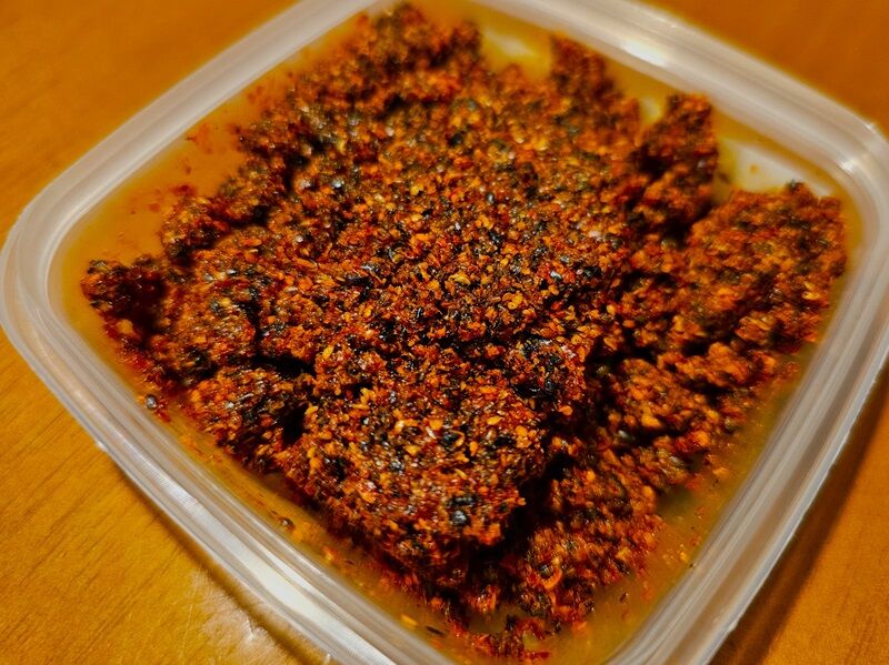 そして、ふたを開けたときからラー油の香りがプ~ンと・・・