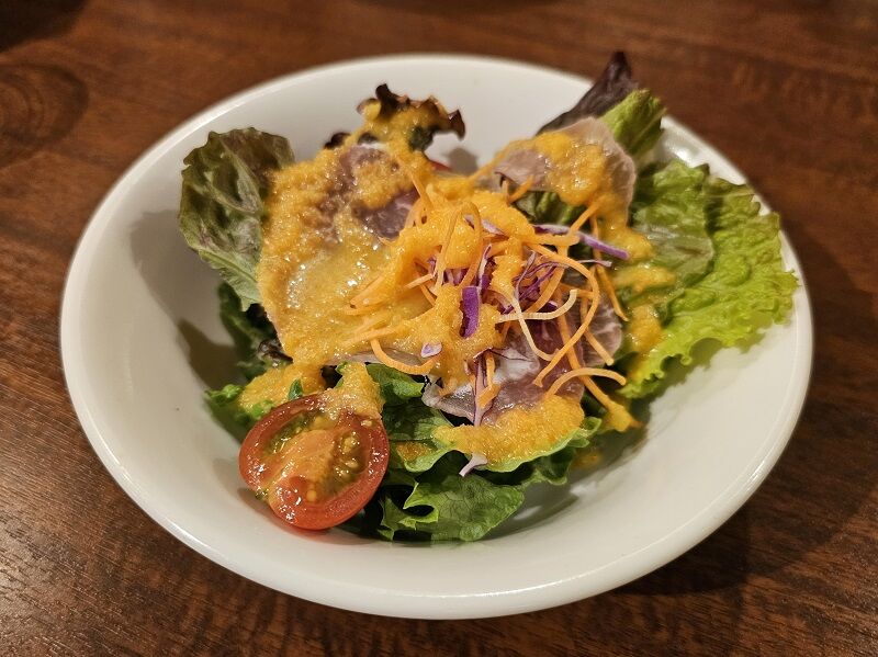 最初に出てきたサラダ。爽やかなドレッシングが美味しかったですね。